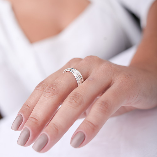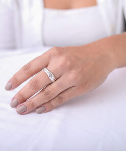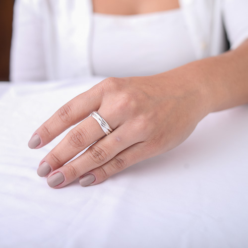 Feito em prata de lei, o anel apresenta cinco fios delicadamente entrelaçados, criando um design que é simultaneamente sofisticado e versátil. Cada detalhe é trabalhado com precisão para garantir um acabamento impecável que brilha com elegância.