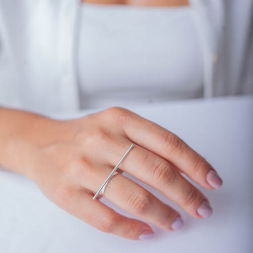 Aro único que sobrepõe o dedo, criando um efeito visual único