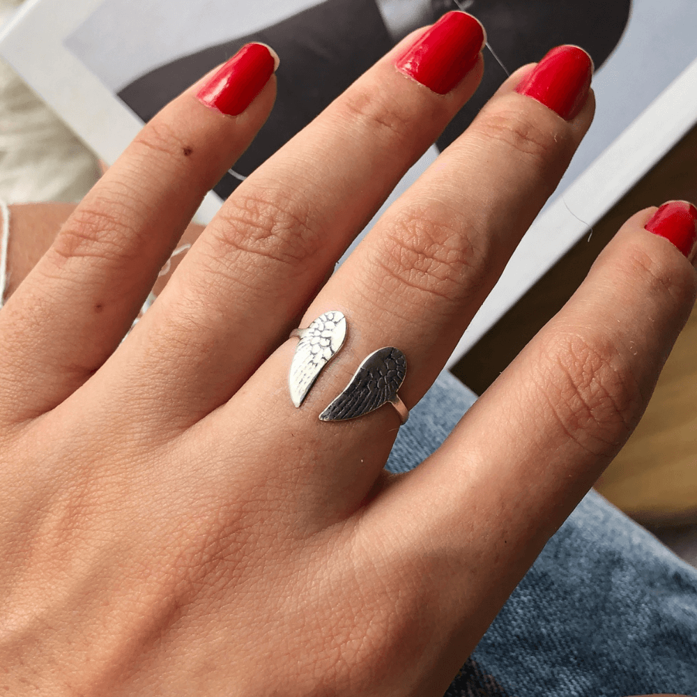 Anel Asas de Anjo Regulável – Prata 925
