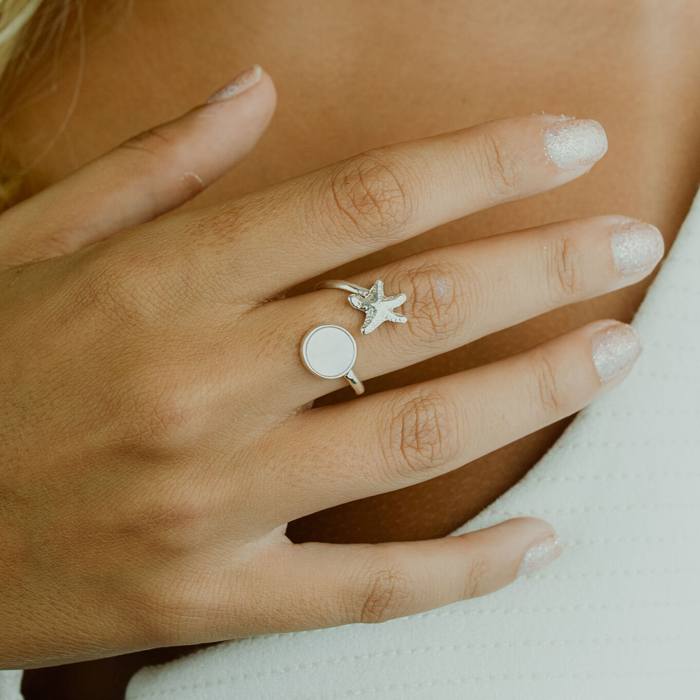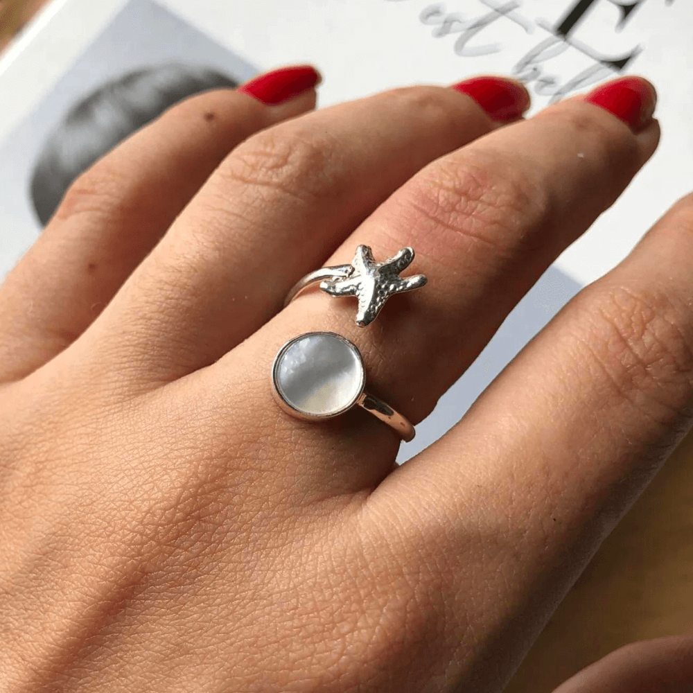 Anel Estrela do Mar e Madrepérola (Original) – Prata 925