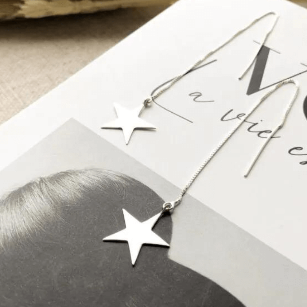 Elegante com um design delicado. Ele apresenta uma estrela de prata pendurada em uma agulha alongada, proporcionando um visual encantador. Com detalhes minuciosos e acabamento polido, o brinco oferece brilho e charme. É uma opção versátil para adicionar um toque celestial ao seu visual, seja no dia a dia ou em ocasiões especiais.