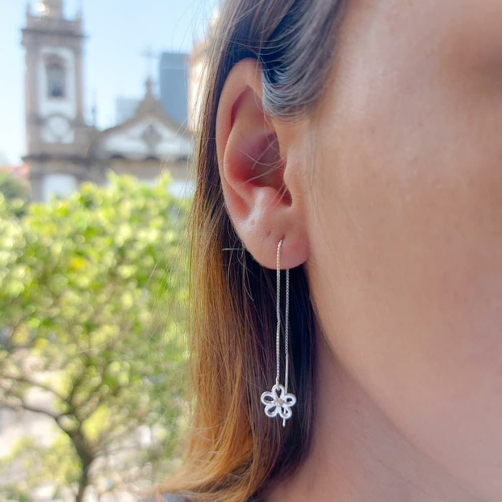 Brinco Agulha Flor – Prata 925