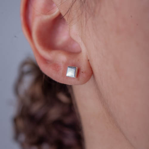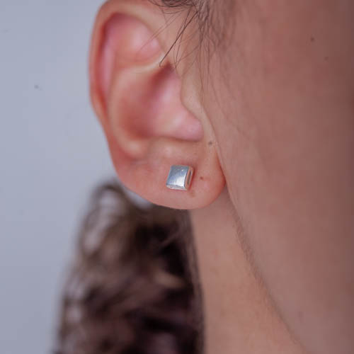 O brinco Dadinho é um par de brincos de prata com design geometrico. Feitos em prata 925, possuem formato quadrado polido. São peças únicas e divertidas para adicionar estilo aos looks.