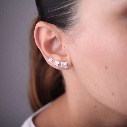 Três Pares de Brincos em Zircônia Quadrado em Prata 925