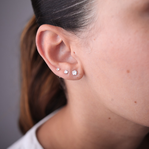 Três Pares de Brincos em Zircônia Redondo em Prata 925