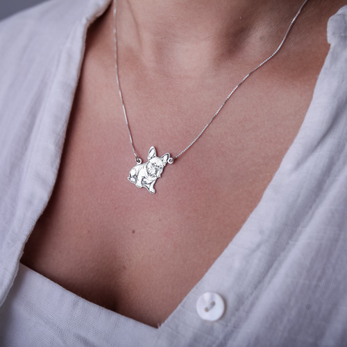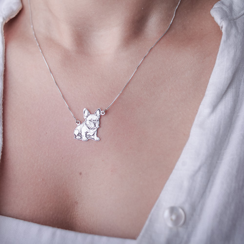 O Colar Bulldogue Francês é uma celebração encantadora desta raça de cães tão amada por sua personalidade única e charmosa. Feito em prata 925, este colar apresenta um pingente delicado em forma de Bulldogue Francês, capturando sua expressão simpática e cativante. O pingente é suspenso em uma corrente elegante, adicionando um toque de estilo e graça a qualquer visual. Este colar é o presente ideal para os amantes de cães, especialmente aqueles que têm um carinho especial por esses adoráveis e companheiros caninos.