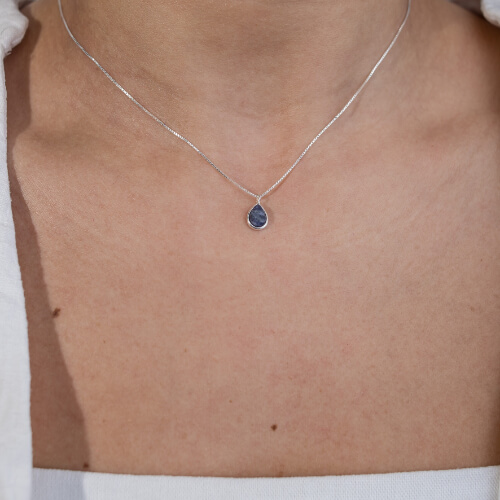 A Choker Sodalita Gota une a elegância da prata 925 com a delicadeza das pedras naturais de sodalita em formato gota, com aproximadamente 5 mm. Com comprimento total de 40 cm e extensor de 5 cm, oferece ajuste confortável e versátil para diferentes estilos e ocasiões. O formato gota traz um toque de sofisticação e feminilidade, enquanto a cor azul intensa da sodalita realça o charme do acessório, perfeito para compor looks casuais ou mais sofisticados.