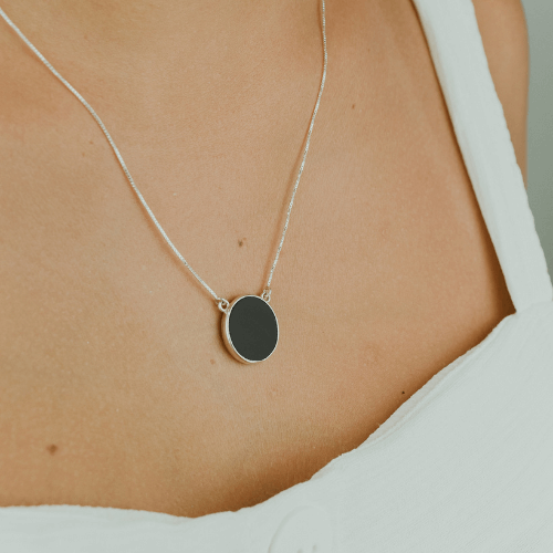 o Colar Ágata Negra (Original) Castroada, uma joia única que combina elegância e beleza em um design sofisticado. Feito com detalhes em prata de alta qualidade, este colar destaca uma impressionante ágata negra (Original), refletindo a força e a delicadeza da natureza em perfeita harmonia. Seja para uma ocasião especial ou para uso diário, este colar é a escolha ideal para adicionar um toque de estilo distinto ao seu visual. Aproveite a beleza intemporal da Ágata Negra (Original) com o Colar Castroada e destaque-se com classe e sofisticação.