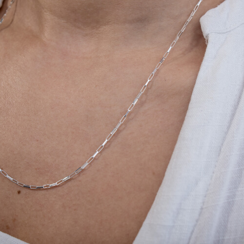 O Colar Cadeado Élégance Fino é uma peça delicada e sofisticada, confeccionada em prata 925. Com comprimento de 50 cm e largura aproximada de 2 mm, sua malha fina tipo cadeado oferece um visual elegante e discreto, perfeito para quem busca um acessório versátil que complemente qualquer look com charme e refinamento. Ideal para uso diário ou ocasiões especiais.