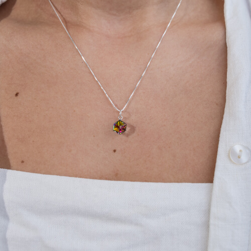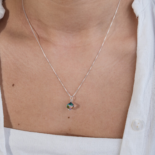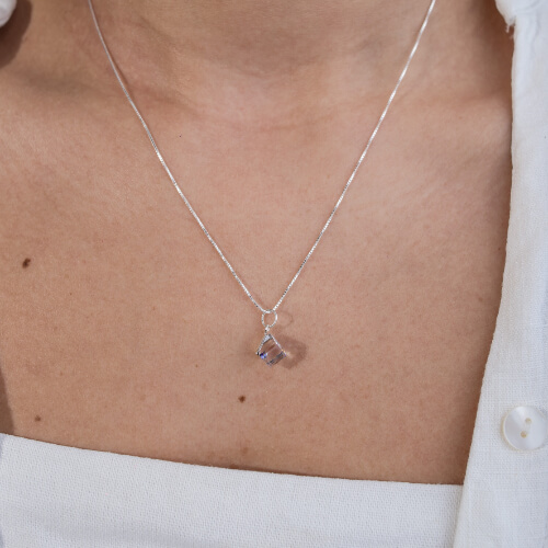 Um detalhe encantador para iluminar seu visual. O Colar Cubo Mágico une a elegância da corrente em prata 925 com a beleza única da pedra furta-cor em formato de cubo, que revela reflexos incríveis a cada movimento. Um colar delicado e cheio de significado, perfeito para destacar sua personalidade em qualquer ocasião.