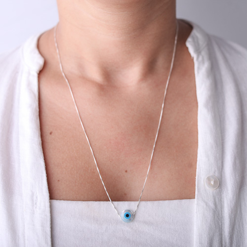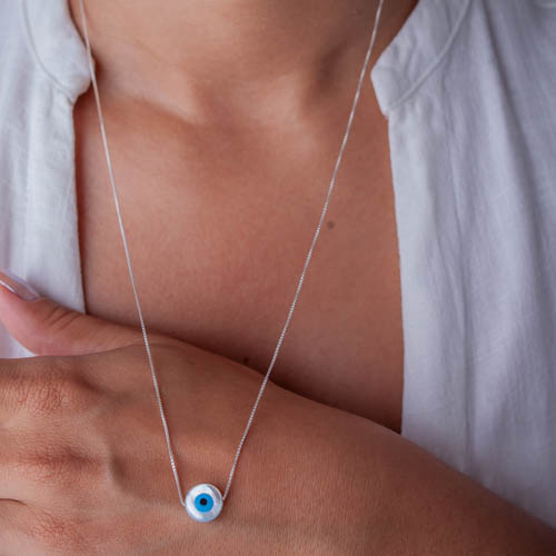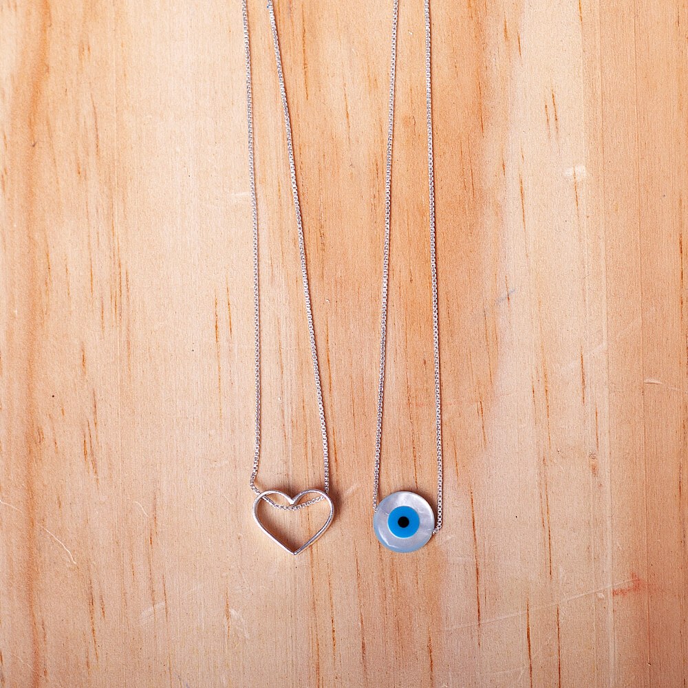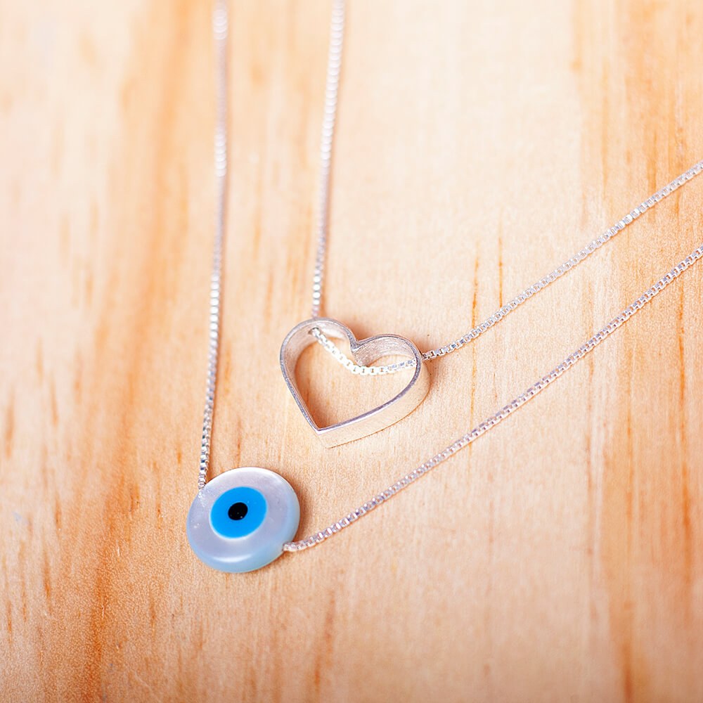 Escapulário Olho Grego e Coração Vazado – Prata 925