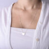 Adicione um toque encantador e protetor ao seu visual com nosso Escapulário Olho Grego e Coração em Prata. Feito com prata de alta qualidade, este acessório apresenta um lindo Olho Grego em madrepérola e um delicado coração. A corrente em prata completa o design sofisticado. Eleve seu estilo com esta joia única.