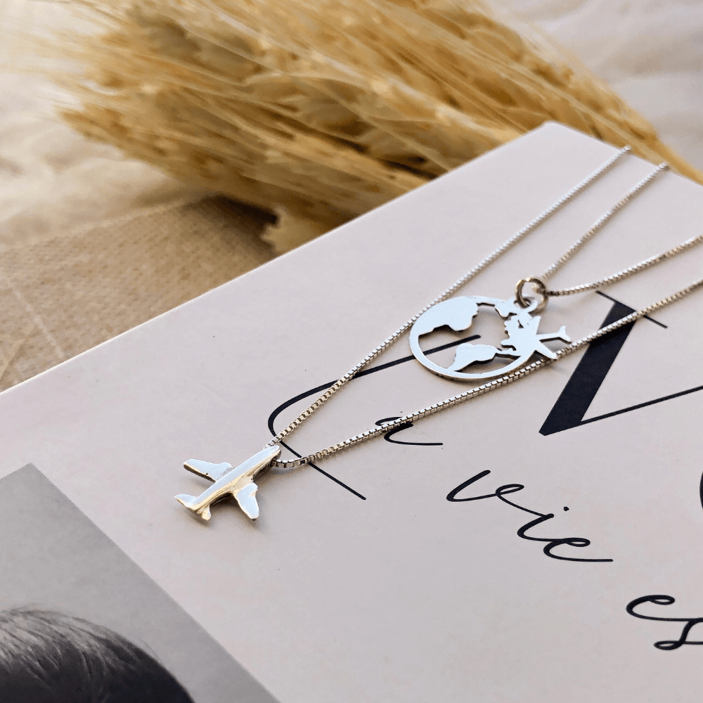 O escapulário “Viagem ao Mundo” é uma bela peça de prata 925 composta por dois pingentes. Um pingente em formato de globo terrestre simboliza o mundo, enquanto o outro em formato de avião representa a ideia de viajar e explorar novos lugares. Ambos os pingentes correm suavemente ao longo da corrente, adicionando movimento e estilo ao colar. Este escapulário é uma escolha perfeita para os amantes de viagens e aventureiros, que desejam expressar sua paixão por explorar o mundo.