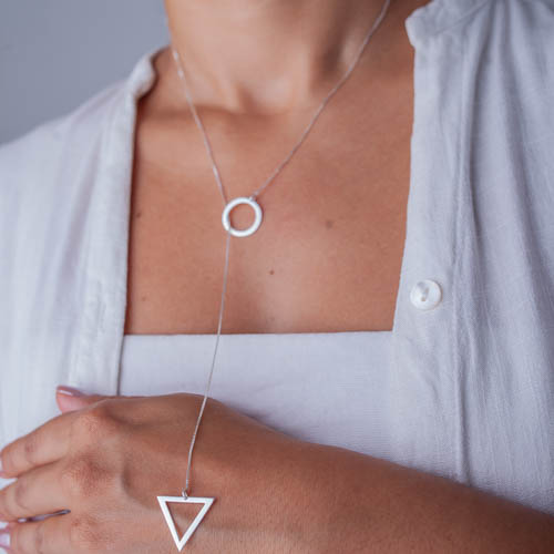 Gravatinha Circulo Vazado e Triângulo – Prata 925