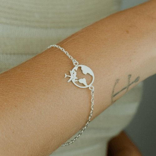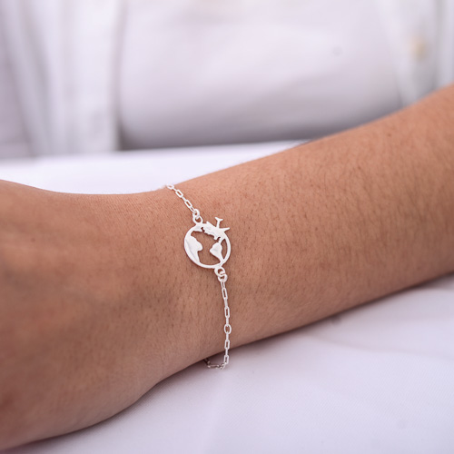A pulseira “Viagem ao Mundo” da Vesty Prata é uma elegante peça de prata com um pingente em forma de globo terrestre e um avião suspenso. Simboliza a paixão por viajar e explorar, sendo um acessório significativo para amantes de aventuras e viagens. Feita em prata de alta qualidade, é uma adição estilosa e simbólica ao visual.
